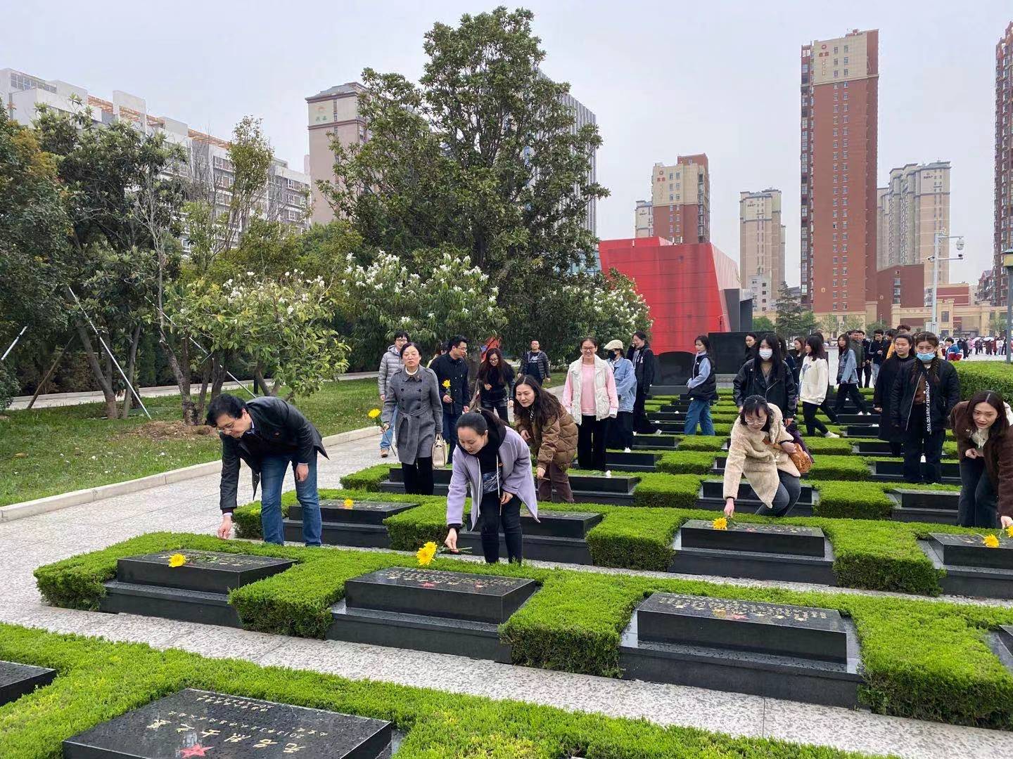 为深入开展党史学习教育,缅怀革命先烈,传承红色基因,培养爱国情怀。4月2日下午,在延绵的细雨中,音乐舞蹈学院全体党员教职工生在党委书记、副书记,党支部书记的带领下来到了许昌市烈士陵园,开展党史学习教育之“清明祭英烈”活动。