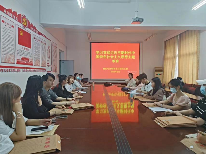 5月26日,舞蹈与合唱学生社团党支部开展“学习贯彻习近平新时代中国特色社会主义思想主题教育”主题的党日活动。