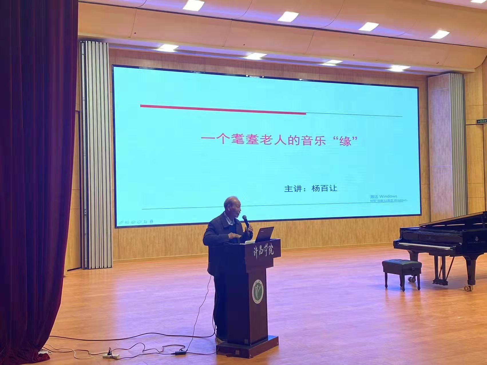 第一场次授课教师为杨天宏、纪明明、黄雅惠、谢晓娣、张锋锋五位老师。纪明明副教授向同学们讲述了戏曲与文化自信,还与同学们进行了互动,让学生对戏曲文化有了进一步了解。第二场次授课教师为冯会、刘丹、李瑞娇、王韫斐。我院还特意邀请了退休老干部--杨百让老师,给新生上了一堂生动的音乐课,他讲述了自己虽不是音乐专业,但却在音乐中受益匪浅,并带来多年来在追逐音乐之梦时积累地珍贵手稿,最后还为同学们献歌一曲。讲座的最后,李瑞娇老师还带领全体学生互动,用身体律动感受了多声部音乐的魅力。