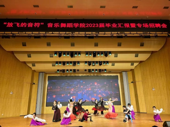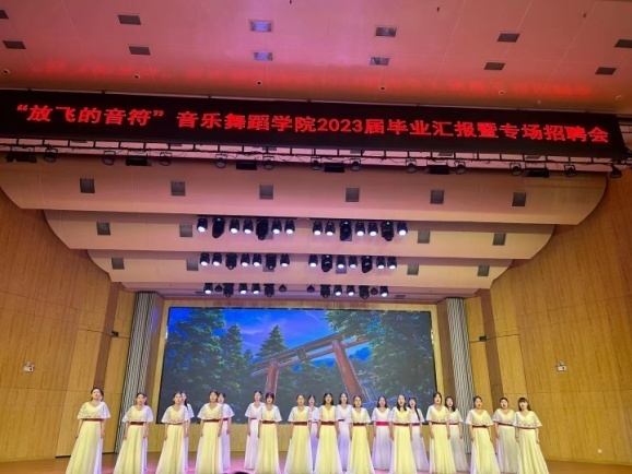 “放飞的音符”毕业汇报暨专场招聘会分为毕业生汇报演出和招聘洽谈两个环节。毕业汇报演出融合声、钢、器、舞多个专业节目,向我校师生以及招聘单位全面展示了2023届毕业生扎实的专业基本功和较强的舞台艺术实践能力。本次双选会为毕业生提供了300余个工作岗位,在招聘洽谈环节,同学们积极地与招聘人员交流,多人达成了就业意向。