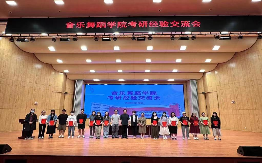活动中,刘斌宣读了《关于对2023届举办毕业音乐会学生进行表彰的决定》,纪明明宣读了《关于对 2023届毕业生考取硕士研究生进行表彰奖励的决定》,学院领导班子为举办毕业生音乐会和考取研究生的毕业生颁发证书。随后,应届及往届考研学生与学弟学妹们分享了自己的考研经验和学习体会。他们根据不同专业,结合自己的考研经历,详细地给同学们讲解了备考期间应注意的问题、各科的复习方法、考研信心的树立、考研计划及作息时间安排等,并针对专业方向选择和复试等方面分享了自己的经验与心得。