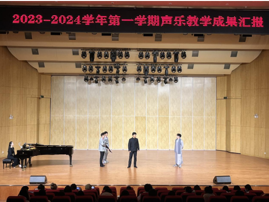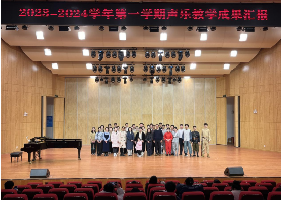 2023年12月25晚上6:30,由音乐舞蹈学院主办声乐教研室承办的23241学期声乐教学汇报音乐会在音乐厅如期举行,音乐舞蹈学院副院长李卫玲、副书记王茹以及声乐课程组的老师和学生们欢聚一堂,共同观赏了这场视听盛宴