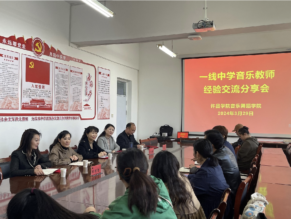 仪式后,全体专家和学院全体教师代表举行了“一线中学音乐教师经验交流分享会”。各位专家由自身一线从业经验出发,为学院师范类专业建设、中学音乐课程研发、中学音乐教法指导、校地平台建设和实习实训等工作提出了中肯意见与建议。本次研讨会推动了许昌市音乐教育界与许昌学院建立更加紧密的“产学研”长效合作机制,是音乐舞蹈学院实现教育链、产业链、人才链、创新链有效融合、联动育人的重要一步。