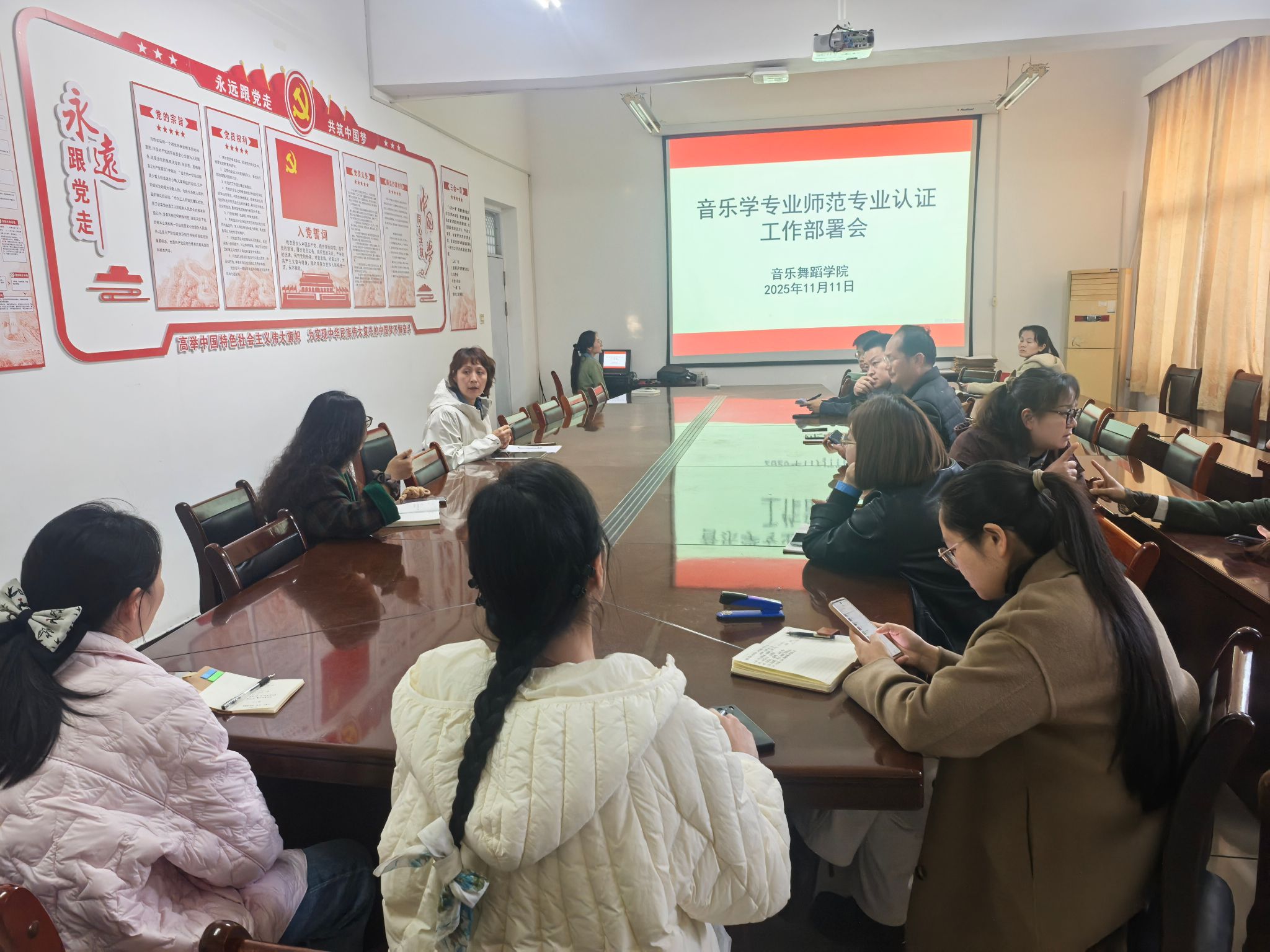 11月11日,音乐舞蹈学院在学院会议室召开音乐学师范专业认证工作部署会,全面启动认证准备工作。会议由院长纪明明主持,学院党政领导、专业负责人及骨干教师参会。