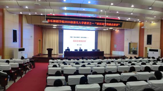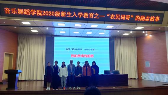 2020年10月13日下午19时,音乐舞蹈学院在学术报告厅召开2020级新生入学教育之一“农民词哥的励志故事”主题讲座,讲座由音乐舞蹈学院党委书记杨天宏主持。