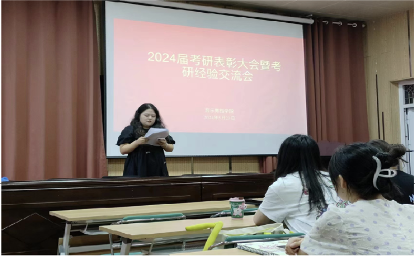 5月23日,我院在艺术楼220教室举办了2024届考研表彰大会暨考研经验交流会。党委副书记王茹、理论教研室副主任谢晓娣、辅导员姚志豪、受表彰的考研学生及考研创新班学生参加了本次活动。首先,由党委副书记王茹宣读表彰文件,王书记对赵刘畅同学进行考研表彰并颁发了荣誉证书。