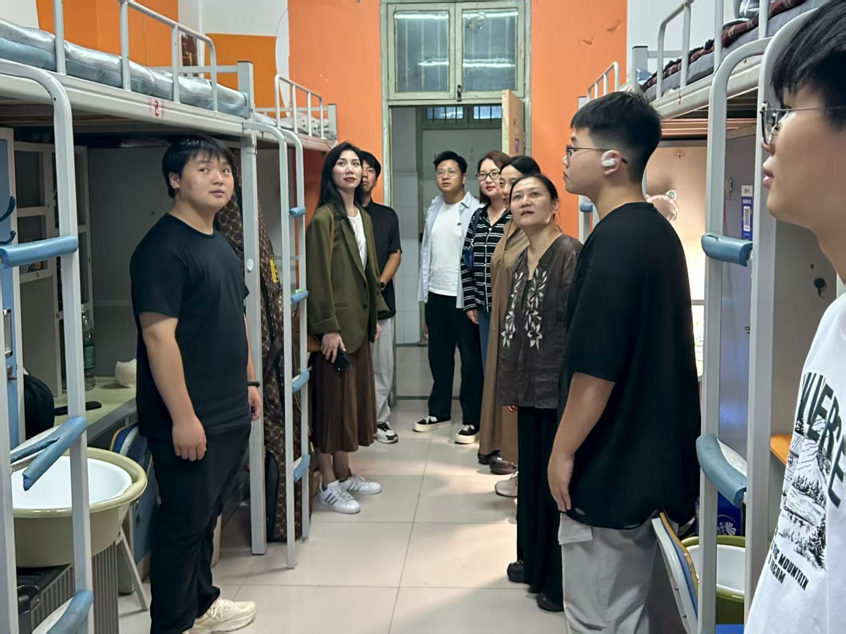 走访过程中,学院领导和老师们与新生们进行了亲切友好的交流,细致询问了同学们的生源地、入学感受以及对专业学习的初步规划,耐心听取了同学们遇到的困惑与问题。领导和老师特别关注了新生们对大学集体生活的适应情况,逐一查看了宿舍的住宿环境、生活设施和安全状况,叮嘱大家要互相关心、共同进步,营造和谐融洽的宿舍氛围,并强调了用电安全、人身财产安全等注意事项。领导和老师们勉励新生要尽快转变角色,适应大学学习生活节奏,珍惜同窗情谊,打好专业基础,规划好大学生涯。