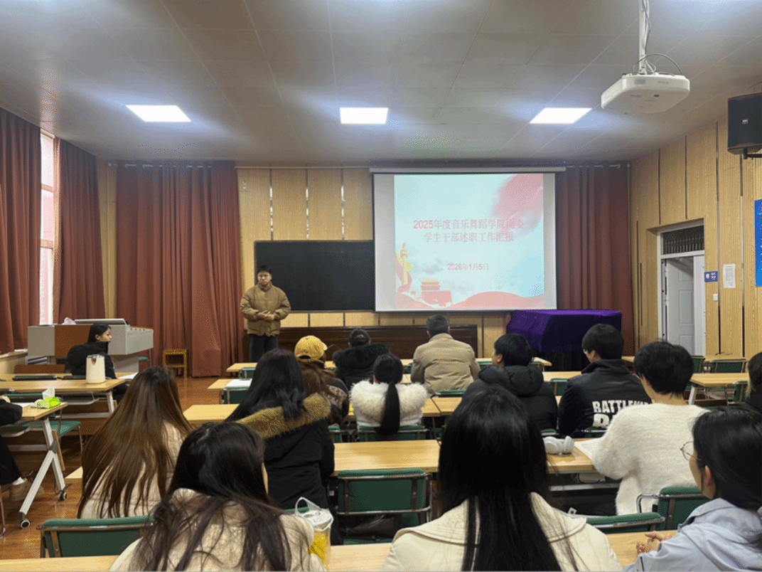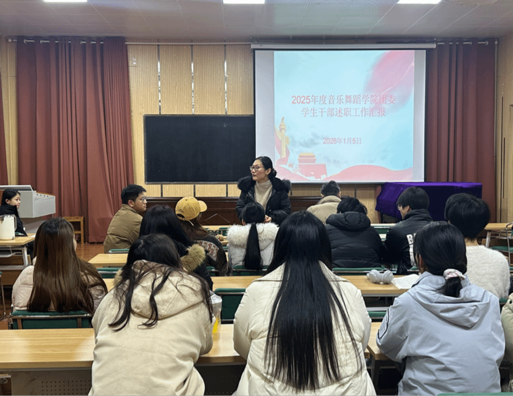 为全面总结2025年度我院团学工作成效,进一步加强学生组织建设,提升服务同学的能力与水平,1月5日,音乐舞蹈学院于艺术楼220组织召开了2025年度学生会述职评议考核会议。学院党委书记刘斌、党委副书记王茹、团委负责人姚志豪及院学生会、青年志愿者协会、社团管理学生代表参加会议。