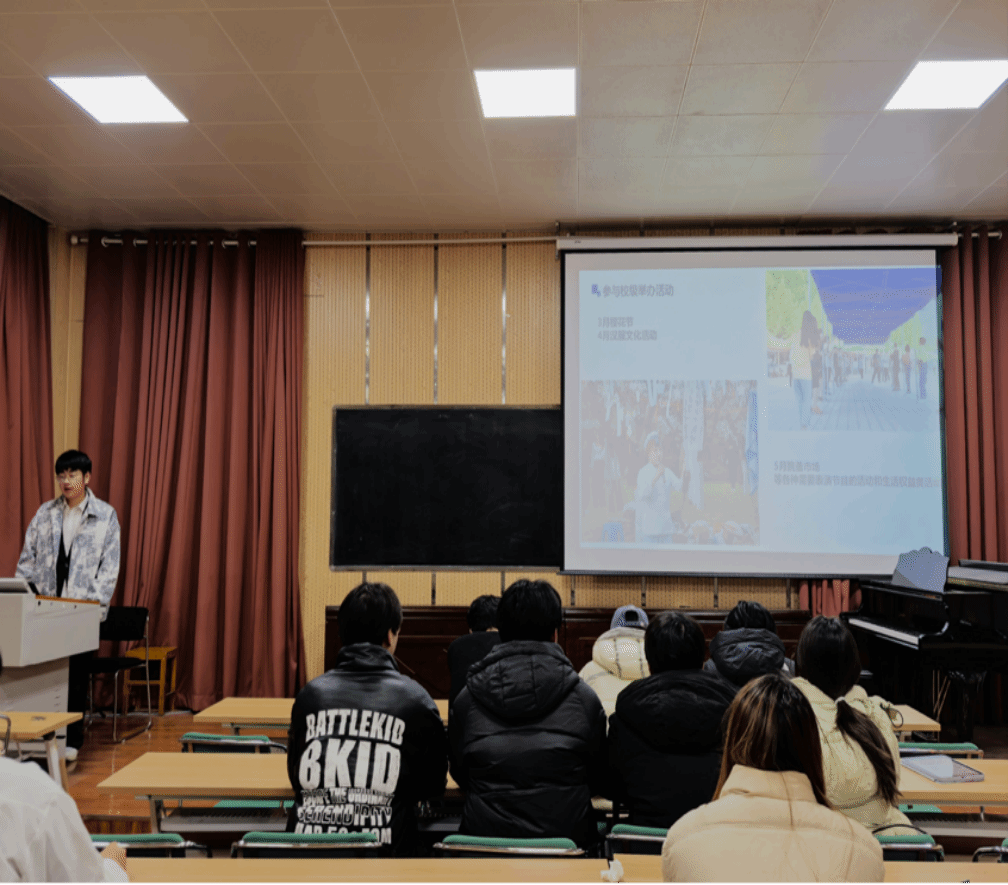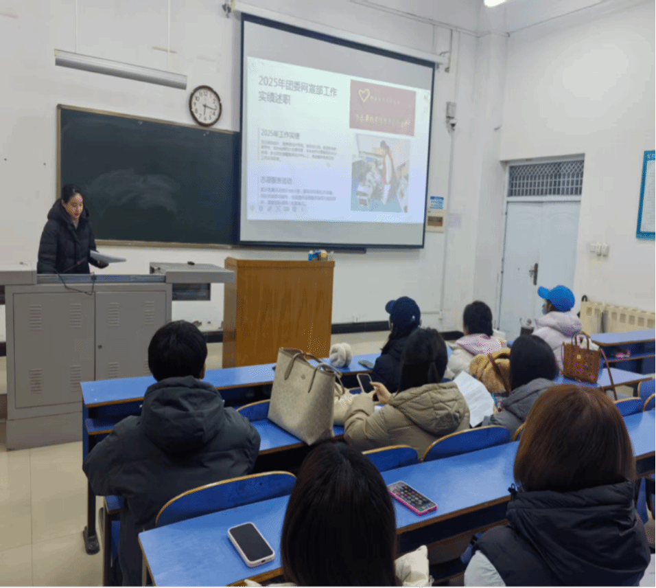 随后,各部门负责人围绕本部门核心职责,通过详实数据、典型案例与多媒体展示相结合的方式,依次汇报了年度重点任务的完成情况、特色亮点、团队协作体会及下一阶段的工作规划。与会干事代表也结合自身经历,分享了在团学组织平台上的成长收获与思考。