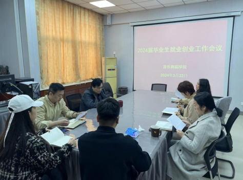 为全面贯彻落实省教育厅和学校关于做好2024届高校毕业生就业创业工作的会议精神,进一步做好音乐舞蹈学院2024届毕业生就业创业工作,2024年3月23日上午,音乐舞蹈学院在艺术楼337会议室召开2024届毕业生就业创业工作会议,院领导班子全体成员、就业专干、毕业班辅导员参加了本次会议。