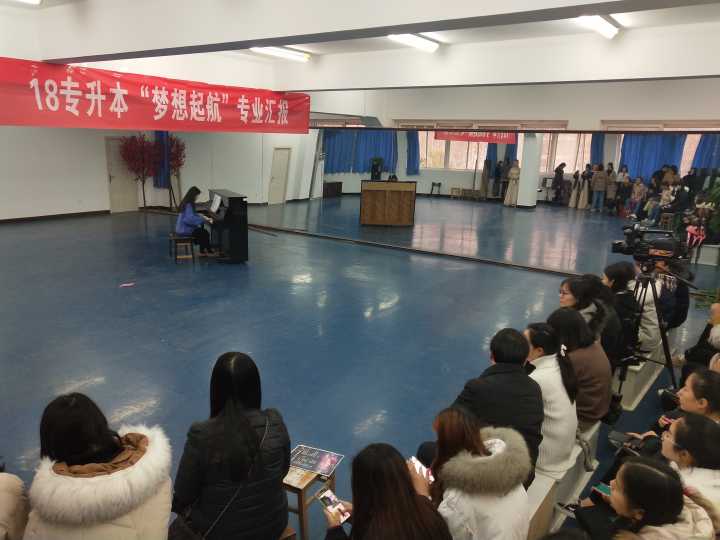 2018年12月22日下午4点,音乐舞蹈学院18级专升本音乐学班,在连廊排练厅举行了班级小舞台专业汇报。出席本次活动的领导老师有党总支副书记申璐莹,团总支书记刘毅飞、卢晓红老师、雷冰琦老师、李靖老师等。18级新生全体参加观看。