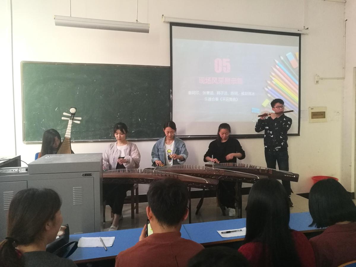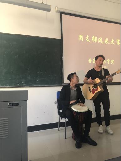 接下来,各个团支部一一进行风采展示,15音表团支部的吉他弹唱、16音乐学本二团支部的男声独唱都令评委及现场观众们赞不绝口、