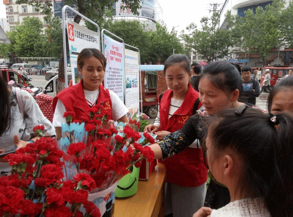 “妈妈,星星的妈妈,你曾满含泪花,却不悔陪伴我长大”母亲节(五月十四日)这天,音乐舞蹈学院雷锋连的志愿者们一起和爱星特教还有爱迪听力回复的师生在时代广场义卖鲜花。玫瑰是情人节之花,康乃馨是母亲节之花。康乃馨代表着温暖亲情,柔美,美得让人心碎。康乃馨的花语是热情,魅力,母亲我爱你,温馨的祝福,浓郁的亲情,伟大的母亲。