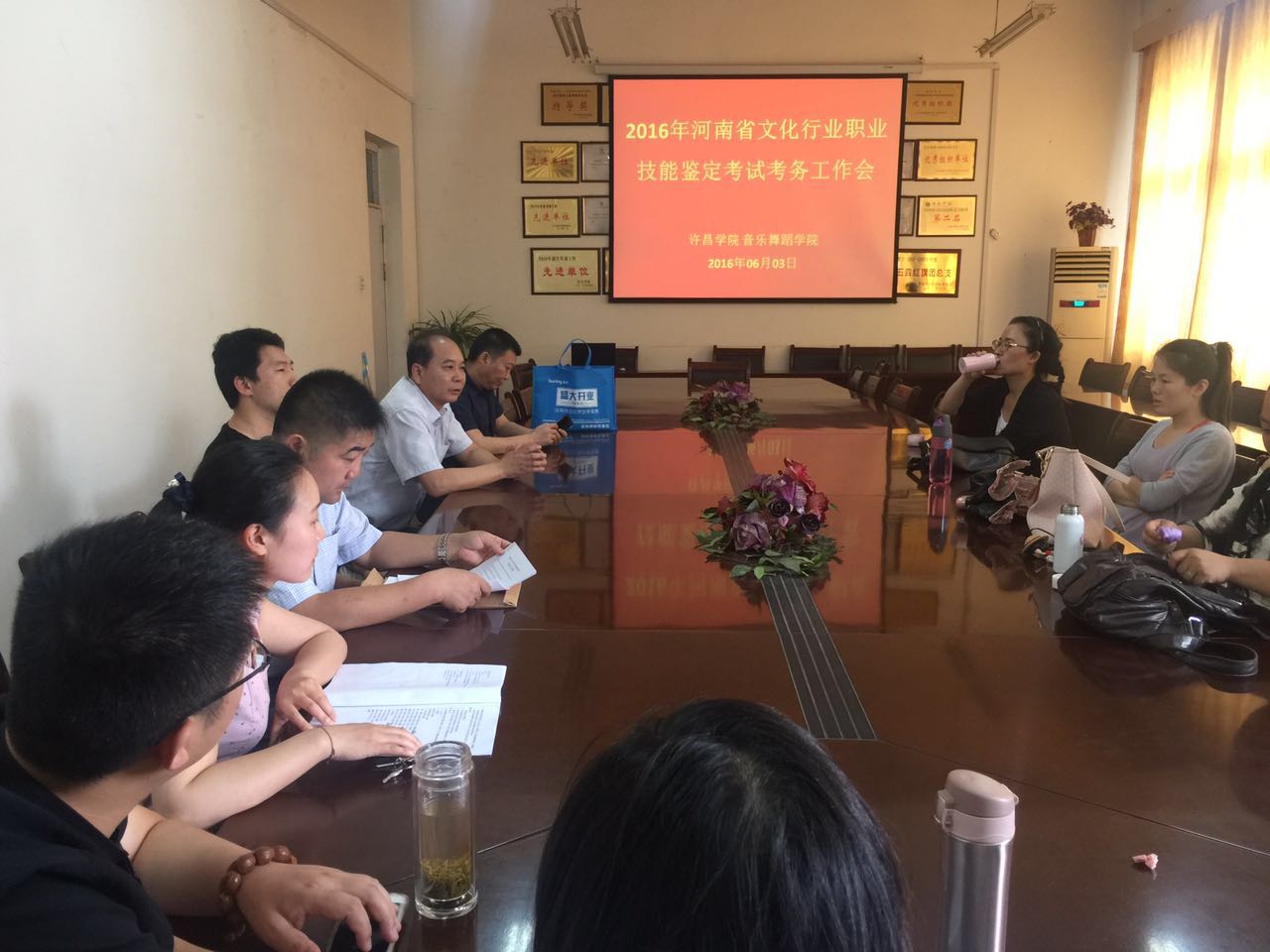 | 2016年6月3日—4日,文化部文化行业特有工种职业技能鉴定考试在音乐舞蹈学院成功举行。文化部行业特有工种职业技能鉴定中心马主任、河南省文化行业特有工种职业技能鉴定站孙站长、技能鉴定中心胥铮主任、包东红副主任亲临现场检查指导。我院副院长杨天宏、副书记申璐莹陪同检查。
