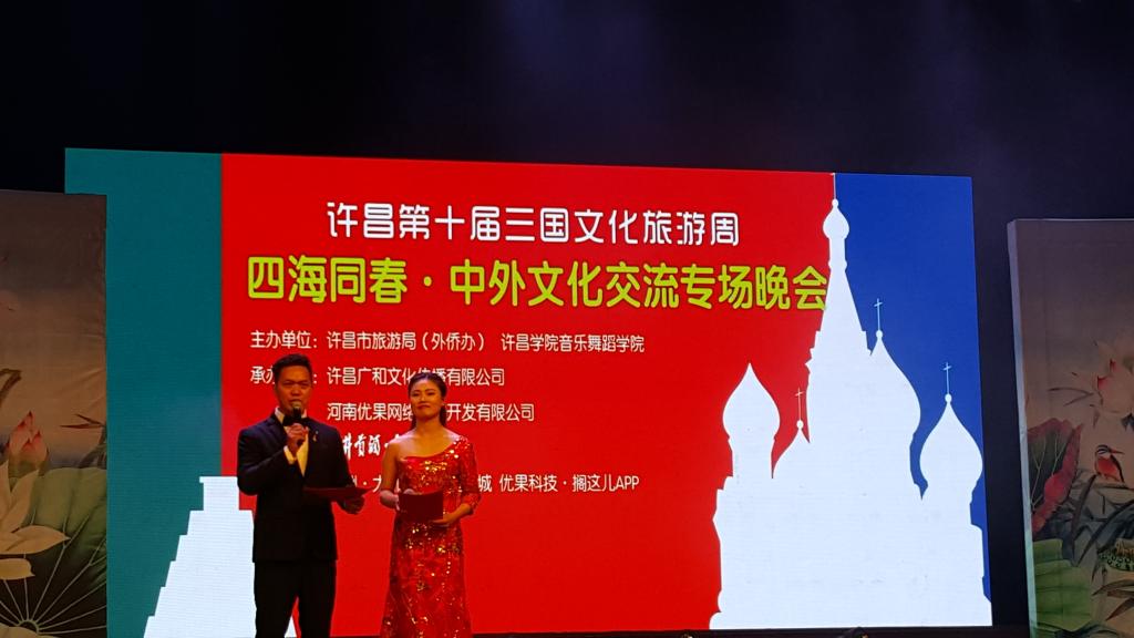 我校音乐舞蹈学院先后承接了4月22日举行的许昌第十届三国文化旅游周导游(讲解员)大赛舞蹈演出,4月28日举行的第十届三国文化旅游周开幕式演出,并与许昌市旅游局联合主办了许昌第十届三国文化旅游周大型文艺演出“四海同春——中外文化艺术交流专场晚会”。晚会上,音乐舞蹈学院舞蹈团与墨西哥蒙特雷民俗艺术团、俄罗斯罗夫斯尼克舞蹈团同台演艺,将精彩纷呈、各具特色的文化演艺活动展现给广大市民,为游客带来回味无穷的三国文化视听盛宴。本次开幕式和晚会由河南省卫视全球同步直播,我校音乐舞蹈学院以其优美的舞姿,向全球彰显了许昌作为“中国三国文化之乡”的品牌魅力。
