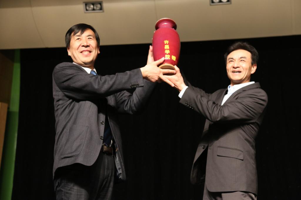 4月10日下午,2015“高雅艺术进校园”——中央芭蕾舞团走进许昌学院专场演出在我校音乐厅举行,享誉中外的中央芭蕾舞团为我校师生们奉献了一场精彩绝伦的演出。中央芭蕾舞团党委书记、国家一级演员王才军,许昌市副市长秦春梅,校领导陈建国、马超、崔斌、罗凤英与我校师生一同近距离感受了高雅艺术的魅力,陈建国院长代表学校与中央芭蕾舞团党委书记王才军互赠了礼物。