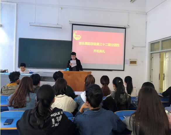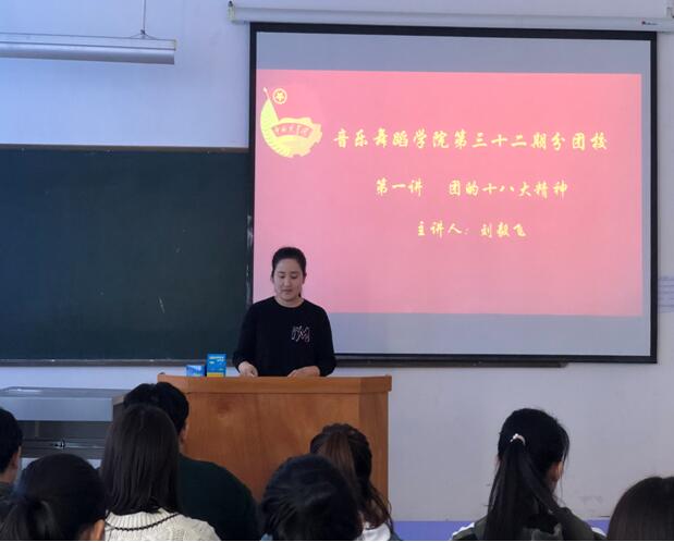 为深入学习宣传贯彻党的十九大和团的十八大精神,牢固树立共产主义远大理想,坚定走中国特色社会主义道路的信念,为党组织培养和输送合格人才。音乐舞蹈学院于10月16日中午在艺术楼205教室举行了第三十二期业余团校培训班开班典礼。党总支副书记申璐莹、团总支书记刘毅飞以及全体辅导员、三十二期团校学员参加了开班典礼。典礼由团总支书记刘毅飞主持。