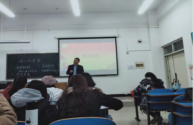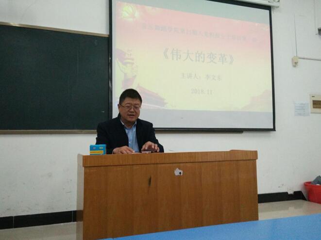 典礼结束后,党总支书记李文东为学员们带来第一讲“伟大的变革—-纪念改革开放四十周年”主题党课。党课中,他从“历史转折、历史巨变、历史启示、”三个方面,详细向学员们讲述了中共十一届三中全会以来,党的历史转折及改革开放四十年来国家发生的翻天覆地的变化取得的举世瞩目的辉煌成就。同时,还对“两个维护”、“四个自信”等方面进行全面深入解读,并引用大量历史事实对党的性质、最高理想和根本宗旨进行了详细讲解,使学员们对党有了更深层次的认知与感悟。希望新学员们能铭记历史、坚定理想信念,从改革开放40周年新的历史起点再次出发,为实现中华民族伟大复兴的中国梦不懈奋斗。