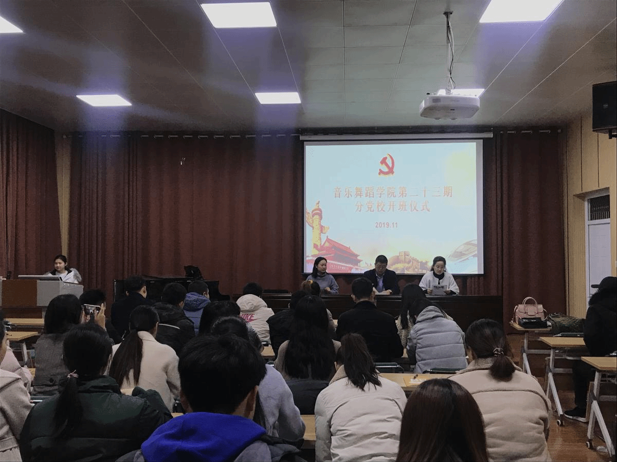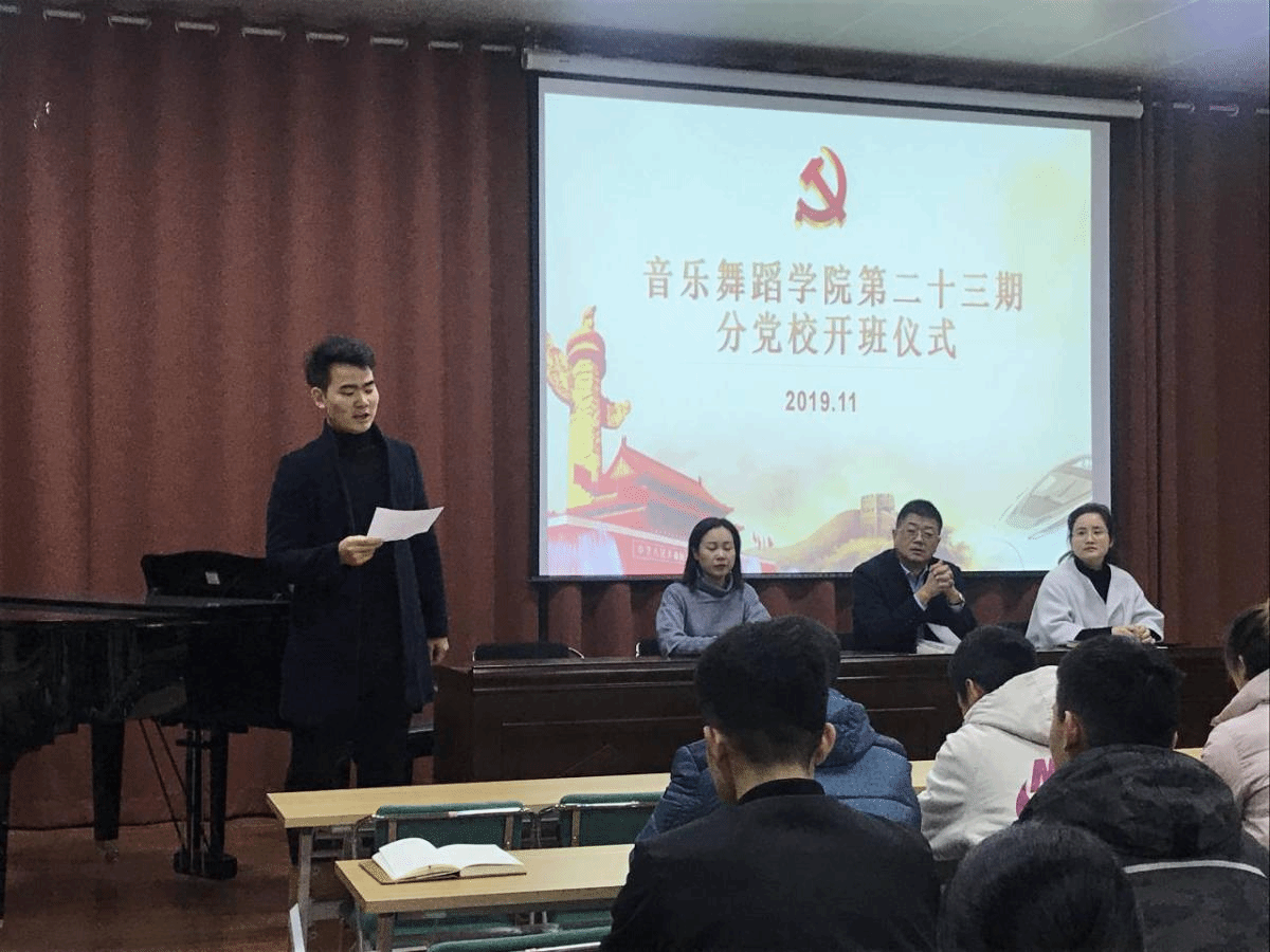 11月1日下午,许昌学院音乐舞蹈学院在艺术楼220教室举办23期分党校开班仪式。党总支书记李文东、党总支副书记申璐莹以及学院入党积极分子、发展对象参加开班仪式,仪式由学生党支部书记刘毅飞老师主持。