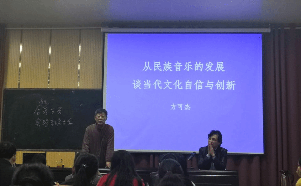 本次讲座方可杰老师以《从民族音乐的发展谈当代文化自信与创新》为题,从文化自信首先要坚持优秀民族传统文化自信、在传承中发展是推动当代文化创新的原动力以及表现现实生活是推动当代艺术创作的文化责任三个方面,给大家做了一场精彩而丰富的专题讲座。