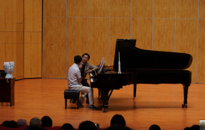 最后,段博士献上了自己创作改编的钢琴曲《唱支山歌给党听》,并与音乐舞蹈学院副院长李卫玲合作,以一曲《我爱你,中国》完满结束了院“音乐论坛(第一期)”学术交流讲座活动。