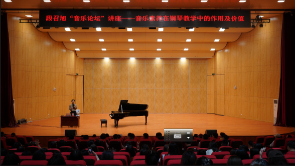 学术交流期间,段召旭博士对音乐素养概念、常识性认知以及钢琴技巧提升等问题,进行了幽默风趣的讲解和详细举例,并在钢琴上示范演奏,其高超的演奏造诣掀起全场不断的高潮。