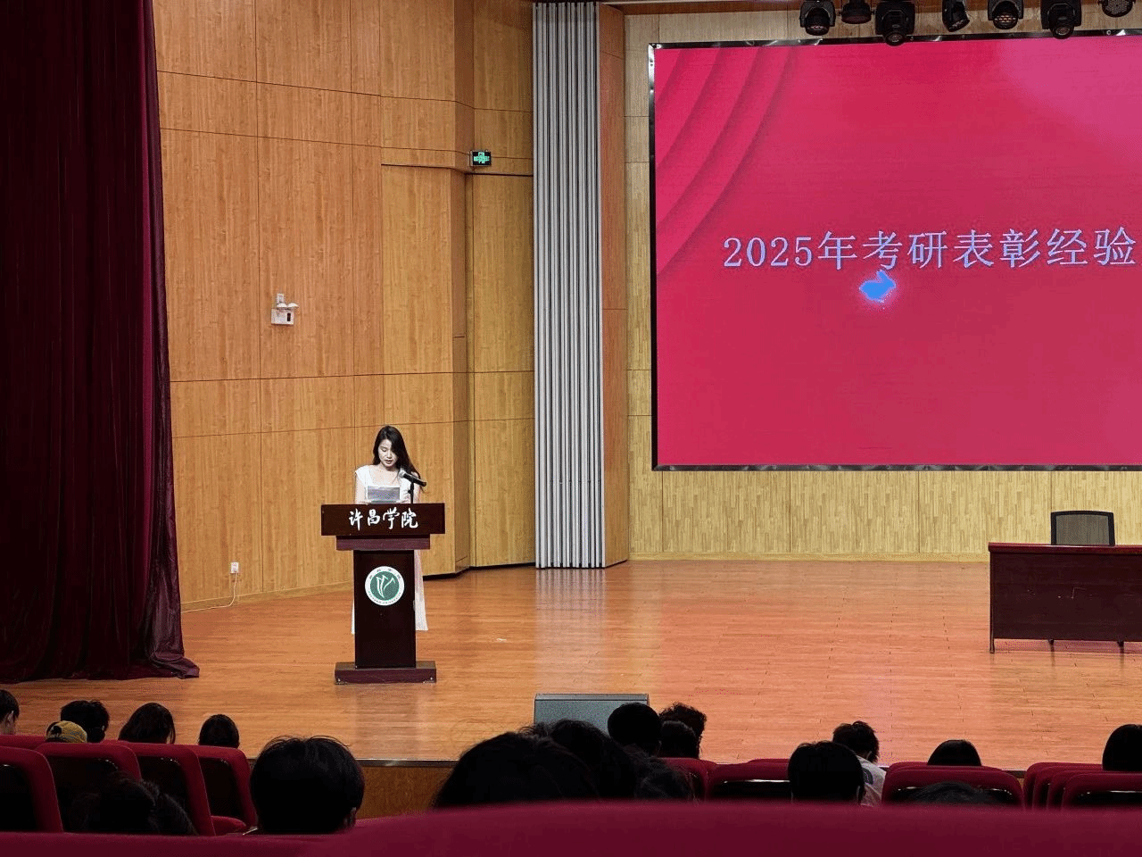 颁奖环节结束后,三位优秀考研学生代表上台分享经验。考取陕西师范大学的刘滢楠。她特别提到,考研是一场持久战,不仅需要扎实的知识储备,更要有坚定的信念和顽强的毅力。希望大家明确目标,坚持到底,相信付出终有回报。