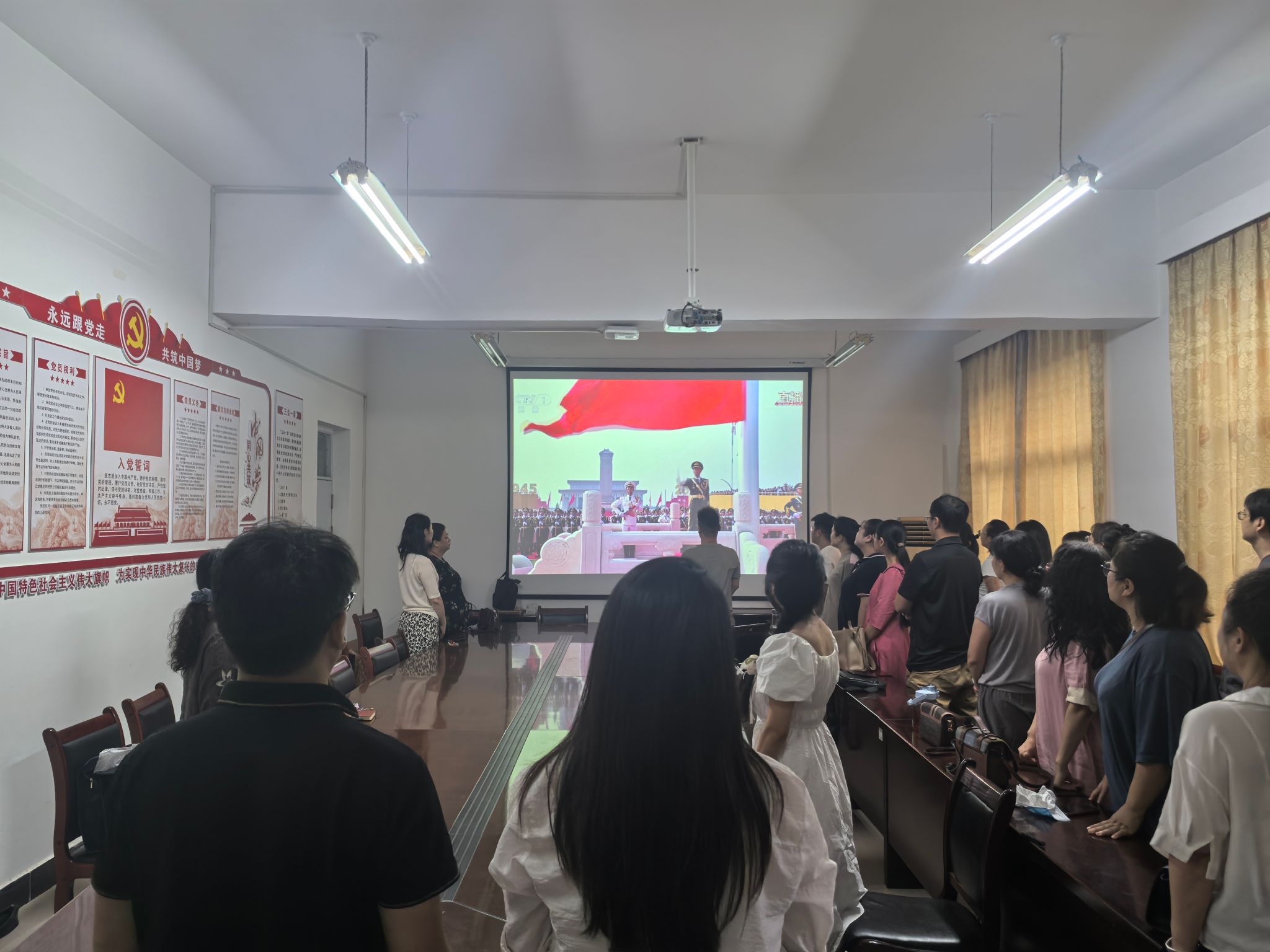 为深切缅怀革命先烈,弘扬伟大抗战精神,2025年9月3日上午,音乐舞蹈学院组织全体教职工集中收看了“纪念中国人民抗日战争暨世界反法西斯战争胜利80周年大会”直播。