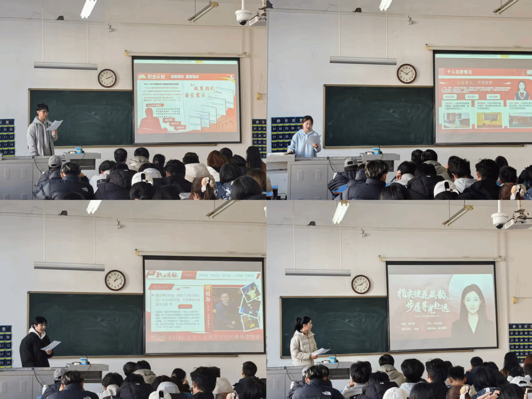 11月21日,我院在艺术楼220教室举办第三届全国大学生职业规划大赛院内赛选拔赛。党委副书记王茹、学工办主任谢晓娣、党政办公室副主任邱靖逸、辅导员老师姚志豪、赵璐以及导师李冬冬、焦奕博、柴瑜担任评委,25级学生观看了比赛。