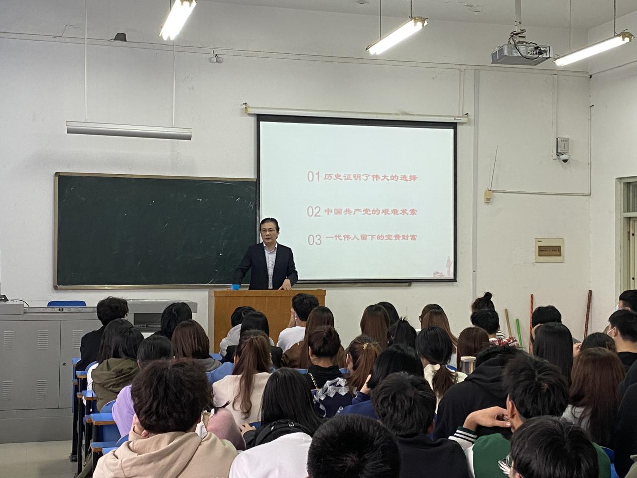 本次讲座题为“历史为什么选择中国共产党”,杨书记主要从三个方面讲述:一是从历史的角度出发,阐述中国共产党为什么能,中国特色社会主义为什么好二是通过学习当今国内外形势,让学生明辨是非、增强政治敏锐力和鉴别力,学会感恩过去、珍惜现在,把报国为民的志向转化为内心坚定理想信念。三是讲述党的英雄楷模典型事迹,教育引导青年学生把握青春、不负韶华,将个人理想与国家民族发展相结合。